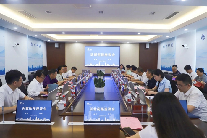 为推动商事仲裁与商事仲裁司法审查工作的衔接,进一步深化诉源治理,探索矛盾纠纷多元化解的新模式, 7月22日、23日,荆州市中级人民法院党组成员、副院长邹应斌,荆州仲裁委秘书长黄文松一行17人赴淮安、扬州两地,交流学习“诉讼 仲裁”纠纷解决机制,仲裁与法院仲裁司法审查、执行衔接等工作。淮安市中级人民法院党组成员、副院长尤铁梅,淮安仲裁委秘书长蒋维林,扬州市中级人民法院副院长姚宏斌,扬州仲裁委秘书处秘书长张媛媛等参加交流。