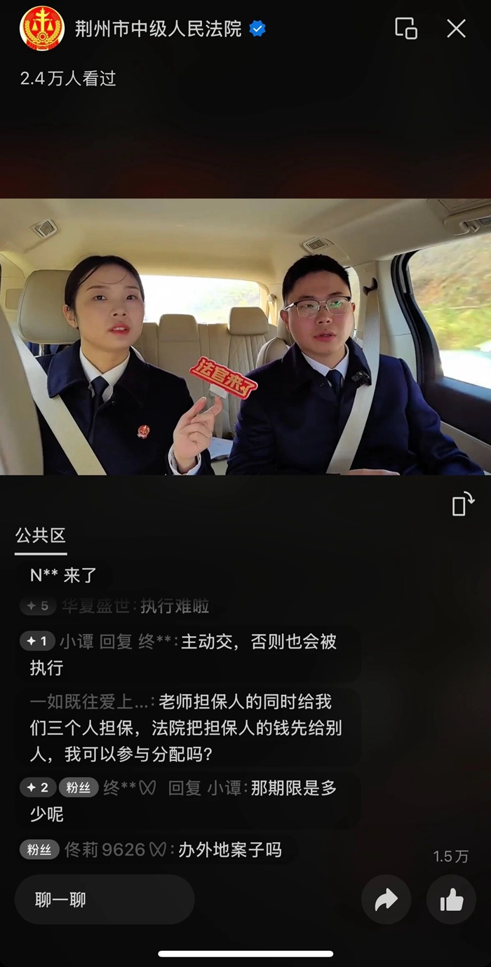 直播过程中,法官还不时停下脚步,面向镜头答疑解惑,讲解执行法规、流程以及各类实用法律小知识。从查封扣押财产的范围界定,到“拒执罪”的具体影响,将晦涩法条拆解成通俗易懂的生活道理,让网友们看得明白、记得牢固。